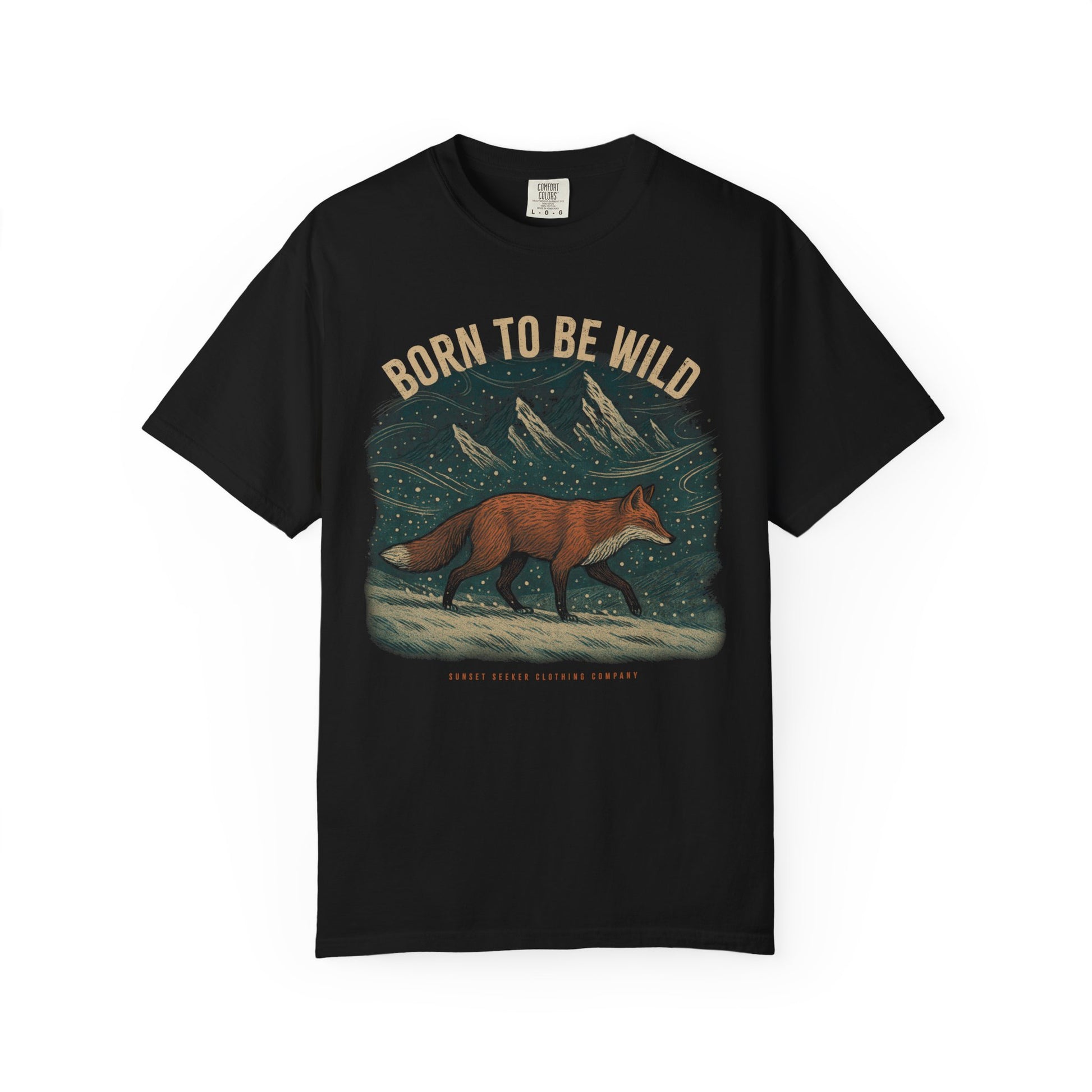 Born to Be Wild features a lone fox trekking through a swirling mountain snowfall — untamed, alert, and fearless. With a hand-drawn vintage style, textured edges, and layered wind lines, this design captures the spirit of independence and the quiet power of nature. Perfect for anyone who moves to their own rhythm.