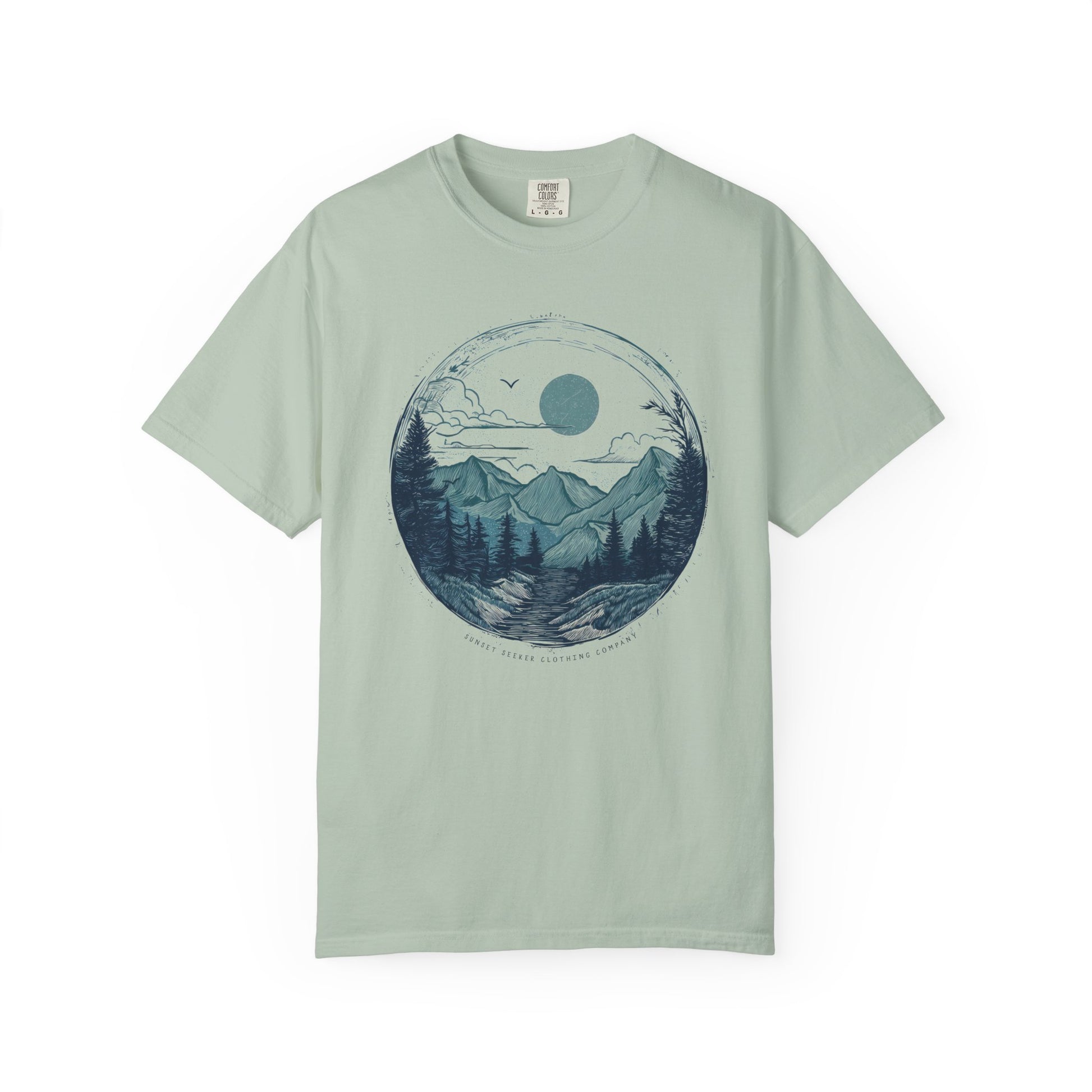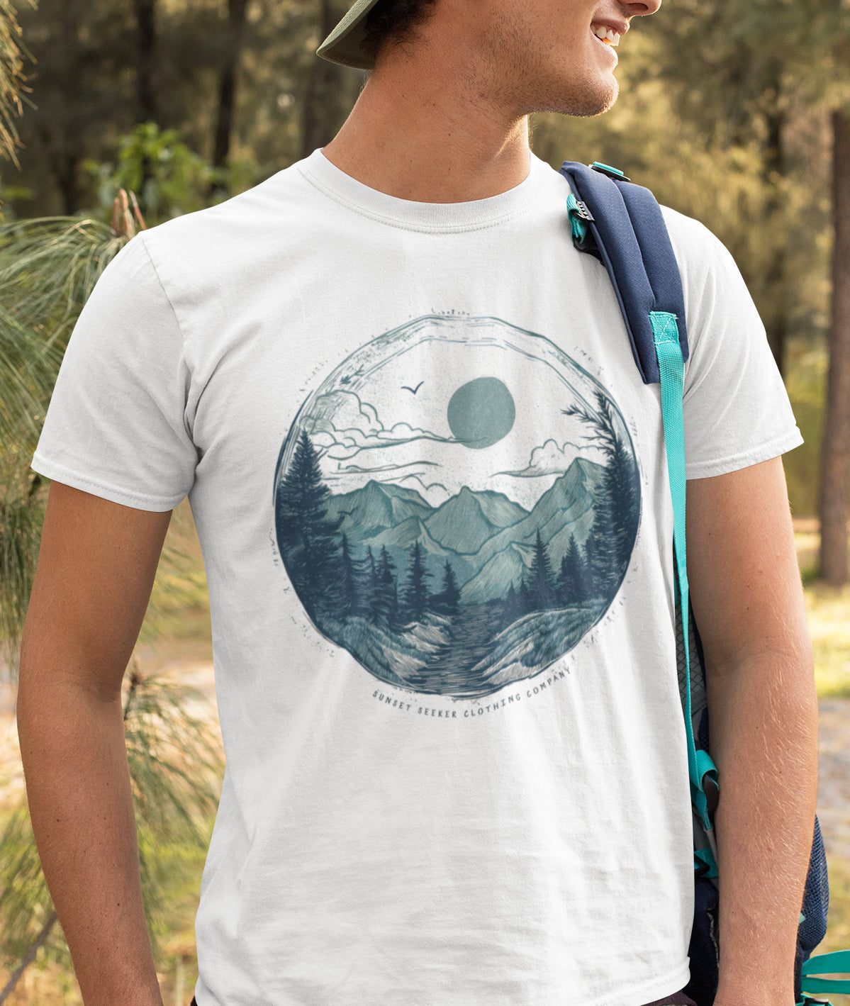 This hand-drawn design captures a serene wilderness under a quiet moon, where a still valley reflects the timeless beauty of forest and mountain. With raw linework and a weathered finish, Peace in the Pines is a tribute to untamed places and the spirits that roam them.
