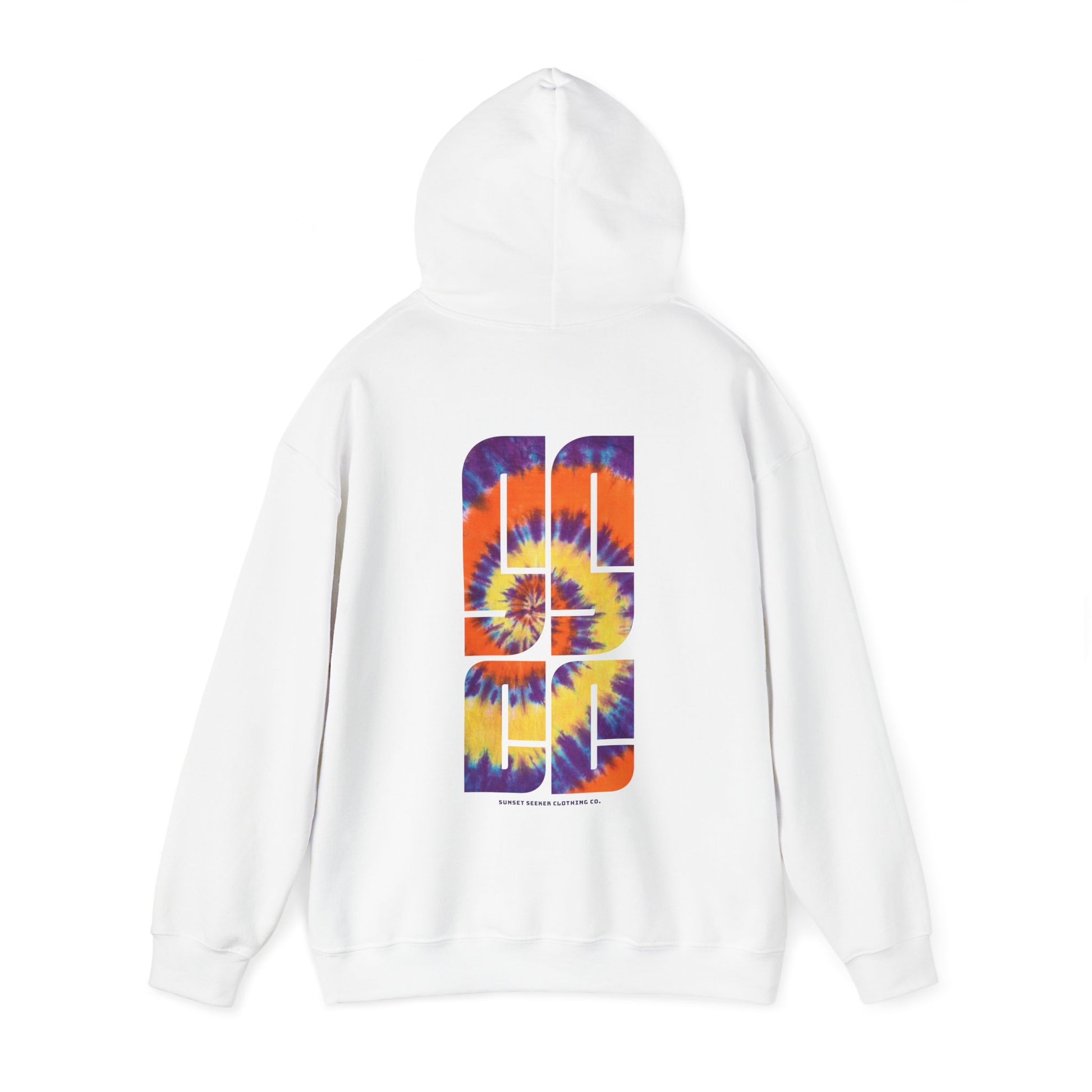Wear our Sunset Seeker brand with style in this tie-dye design hoodie. Made with a thick blend of cotton and polyester, it feels plush, soft and warm, a perfect choice for any cold day. In the front, the spacious kangaroo pocket adds daily practicality while the hood's drawstring is the same color as the base sweater for extra style points.